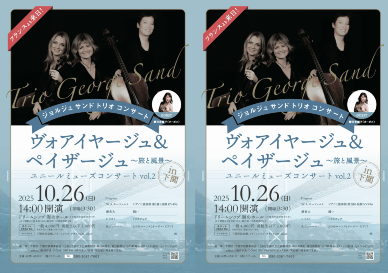 2025年10月26日(日)、ジョルジュサンドトリオコンサート ヴォアイヤージュ&