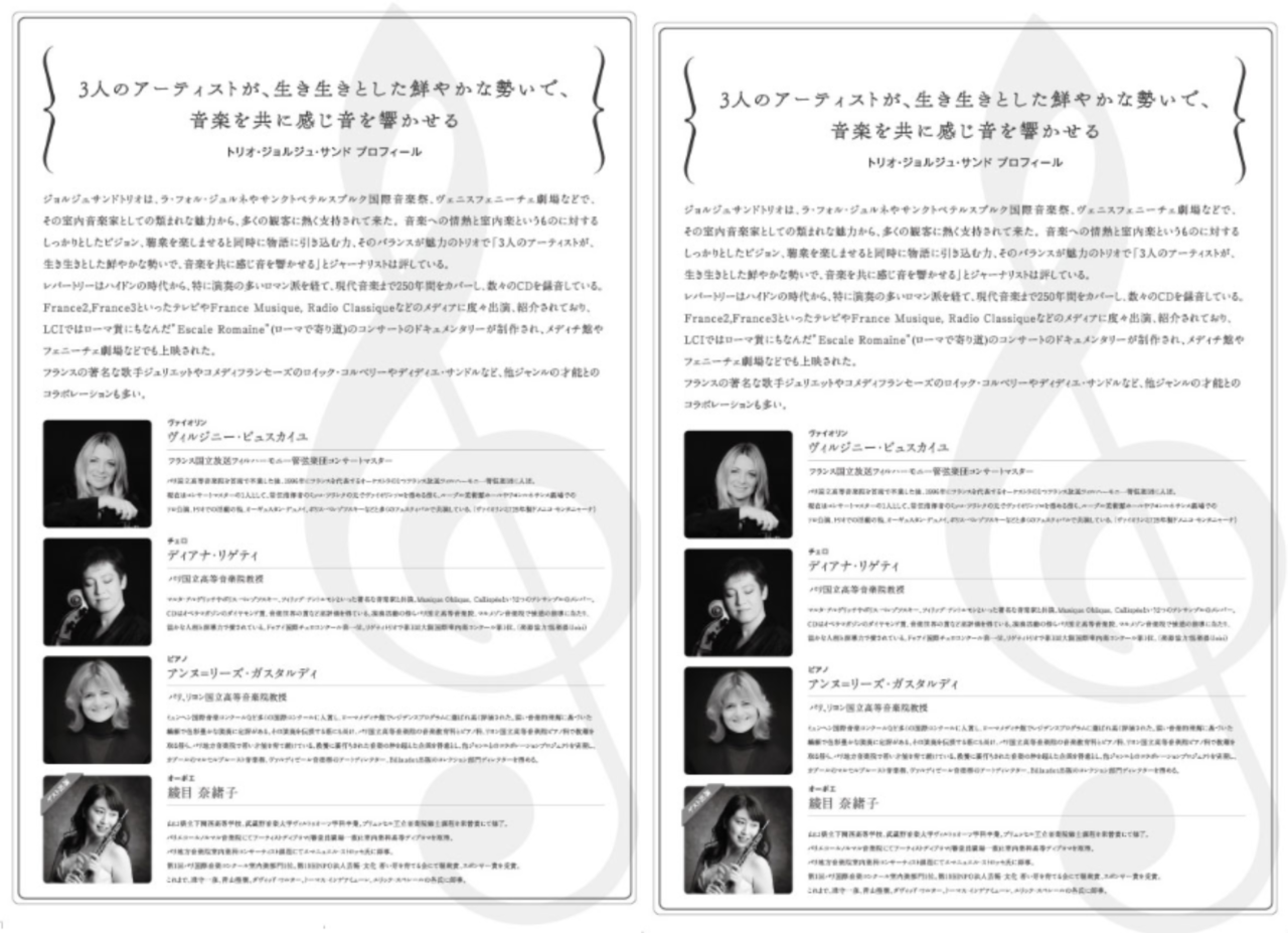 弓が弦に触れた瞬間、ホールの空気が変わるといいます。フランス最高峰の演奏家3人によるジョルジュサンド・トリオのコンサートが