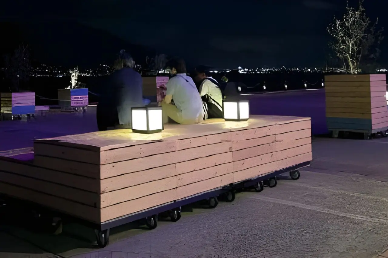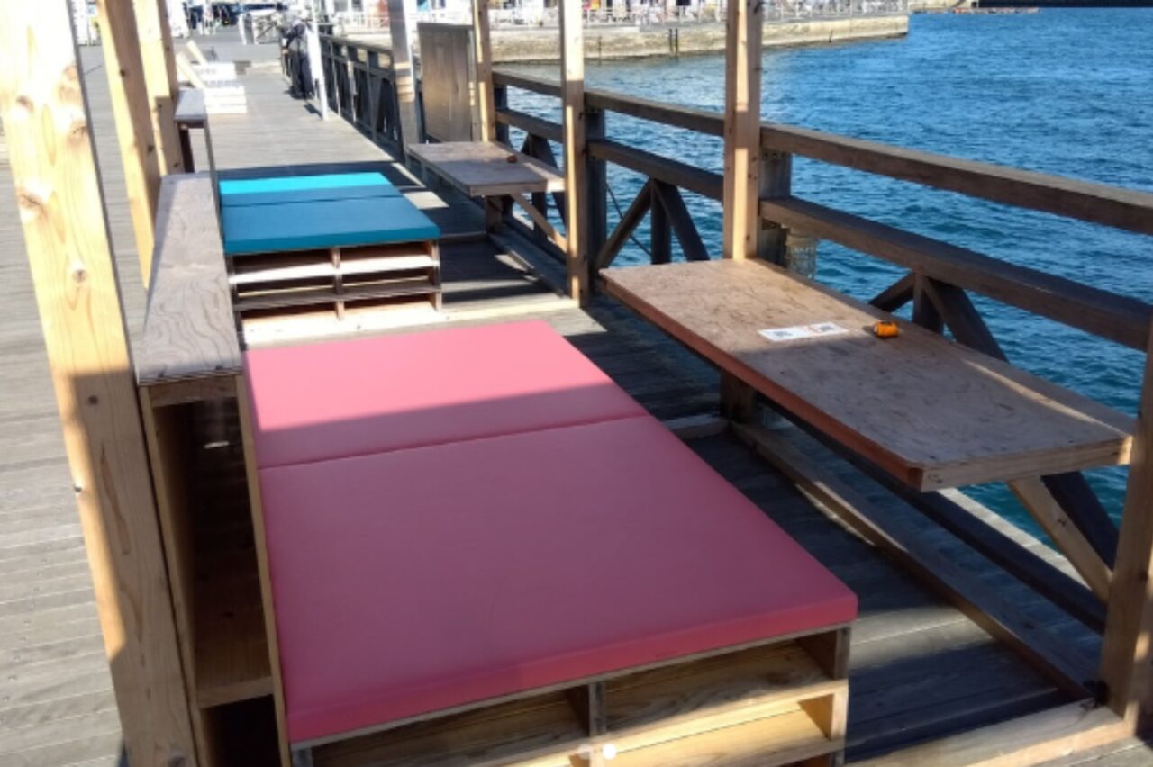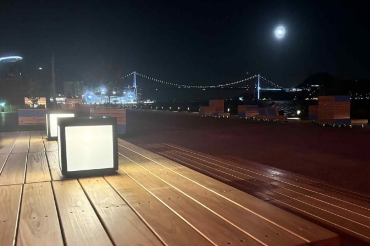 はいからっと観覧車の出口近くにあるベンチに腰を下ろして、対岸の夜景を眺めながら、外の空気を感じて語り合ってみるのはいかがでしょうか。