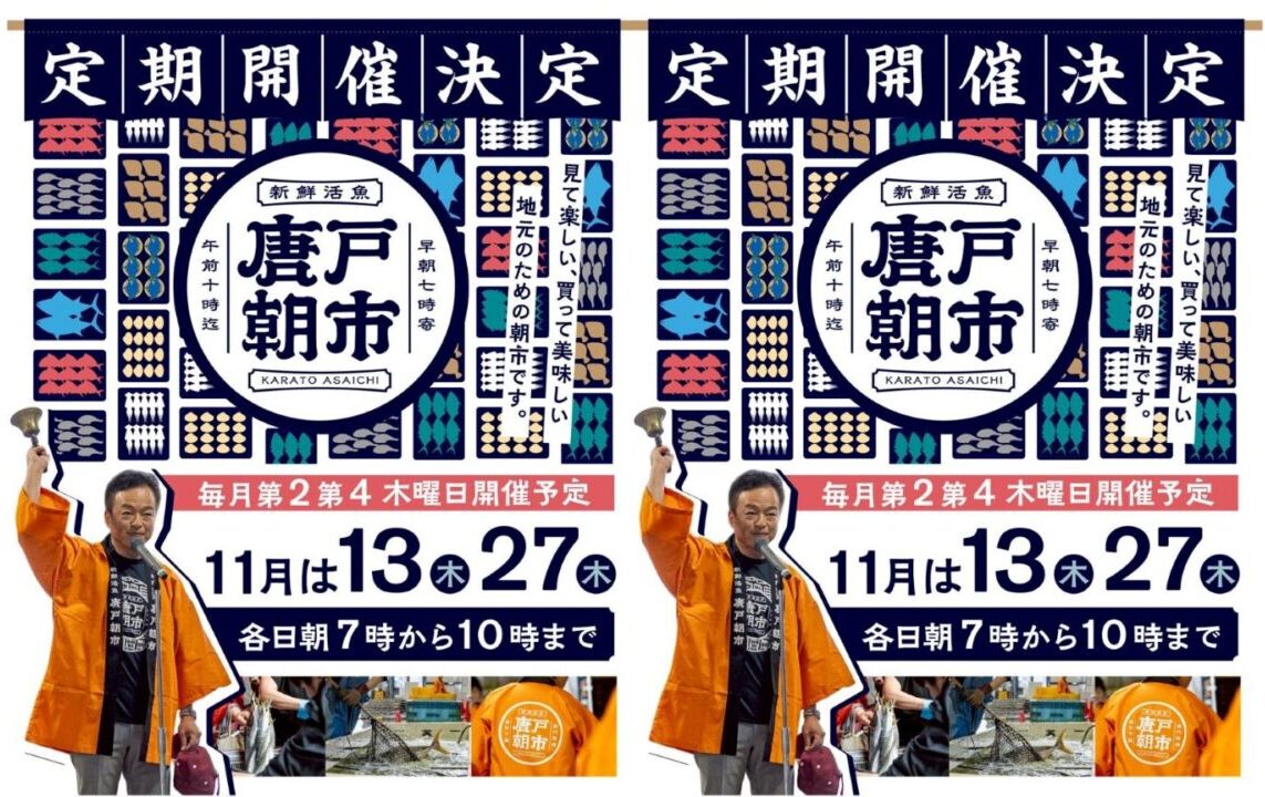 関係者の方のお話によると、その熱気に応えて、このたび唐戸の朝市が、毎月第2・第4木曜日の朝7時から10時まで定期開催されることが決定したそうです。