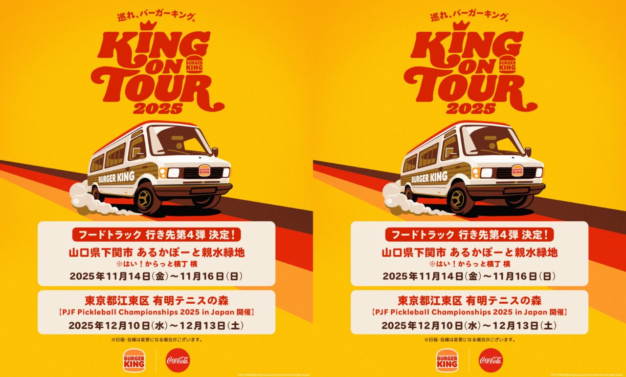 2025年11月14日(金)~16日(日)、あるかぽーと親水緑地(はい!からっと横丁横)に、あの人気ハンバーガーチェーン、バーガーキング®さんが、フードカーで下関にやってきます。