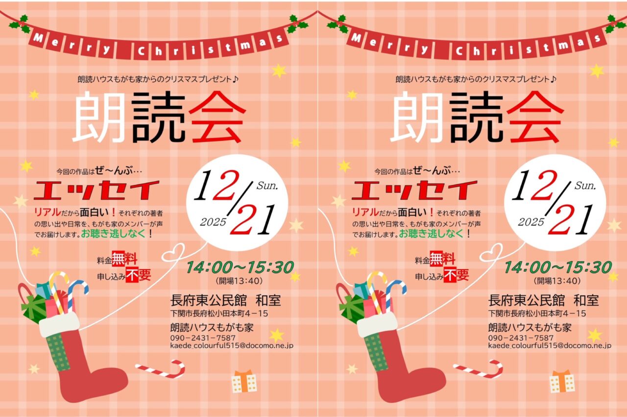 今年最後の朗読会は、12月21日(日)14:00〜15:30に長府東公民館の和室で開催されます。参加費は無料、申し込みも不要で、ふらりと立ち寄れる気軽なイベントです。