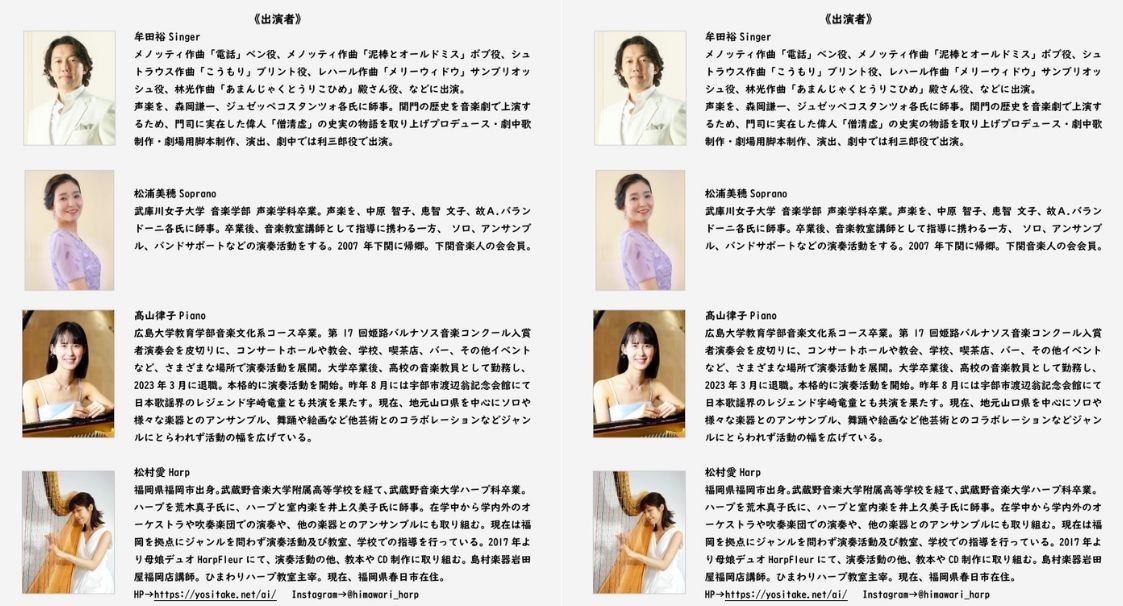 演奏を通じて届けられる、鎮魂と平和への切なる願い。力強く、繊細なソプラノの歌声は、海峡で亡くなられた先人たちへ捧げる荘厳な鎮魂歌(レクイエム)となり、厳かでクラシカルなピアノの調べは、過去と現在を繋いぎ、ハープの澄んだ音色は、愛と平和への想いに彩りを添えるでしょう。