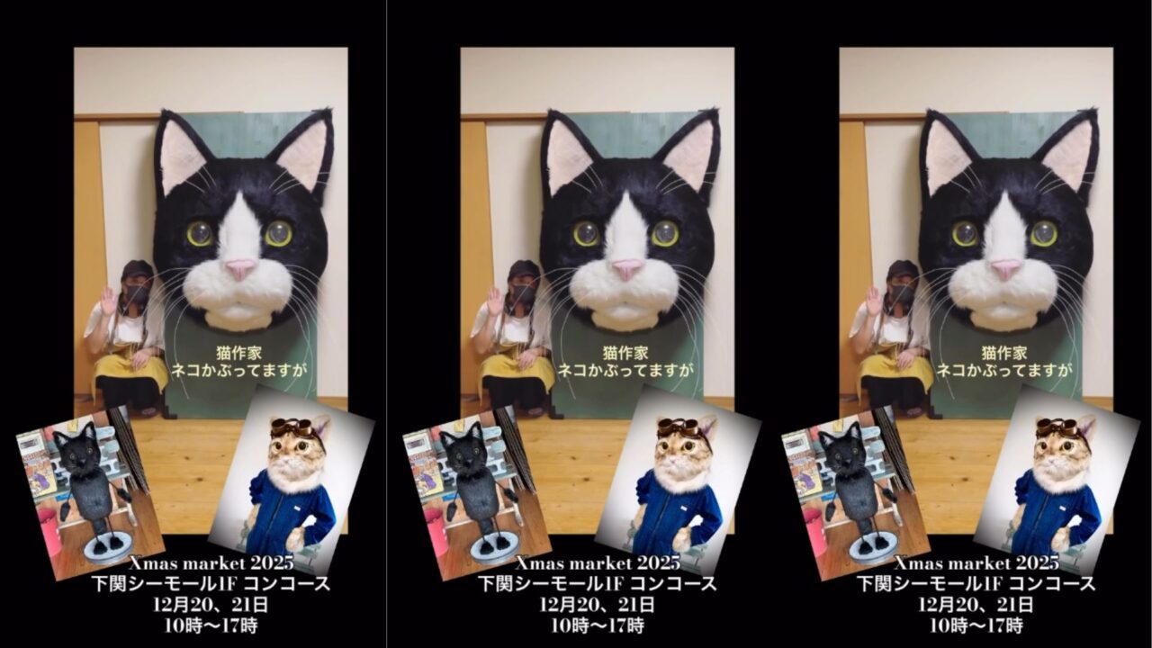 巨大猫オブジェと記念写真が出来るXmas marketが開催されるのシーモール下関はこちら↓