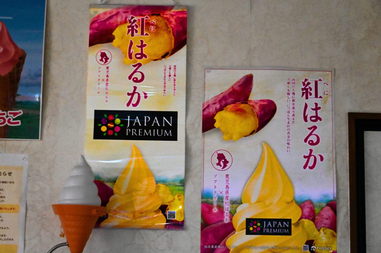 道の駅きくがわの人気のソフトクリーム、12月の期間限定ソフトクリームは紅はるか味。