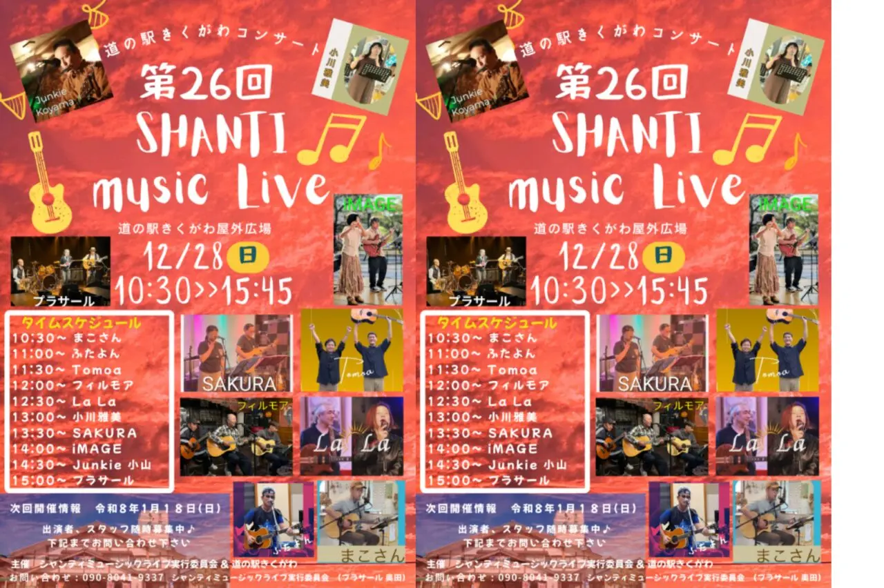 そして、今年最後の日曜日、2025年12月28日(日)は、菊川に地元ミュージシャンたちが集う「シャンティMusic Live」の開催日でもあります。