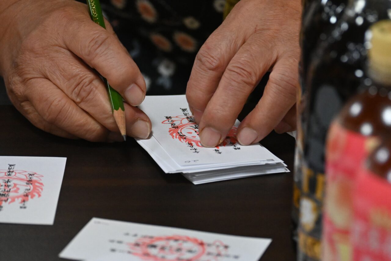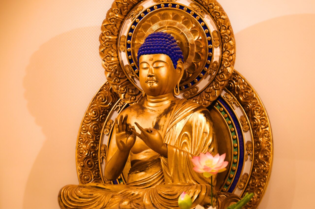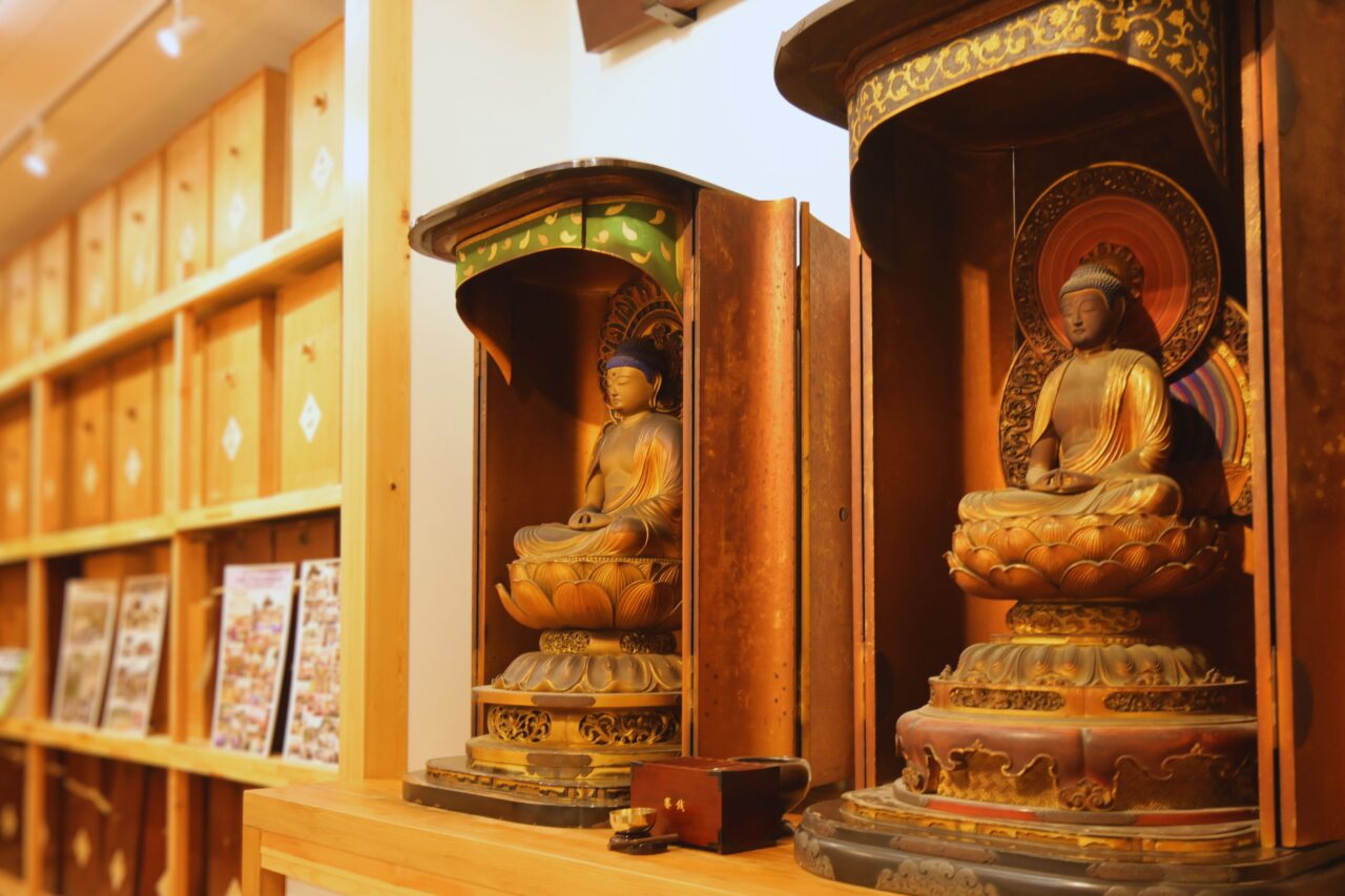 それを、本尊である阿弥陀如来さまの御前へと納めます。「南無阿弥陀仏」とお念仏を唱え、自分だけでなく他者の幸せを願う「回向(えこう)」の心を持つ。