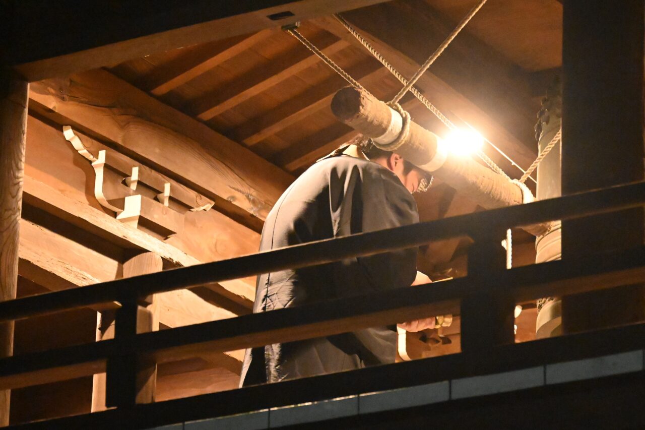 本堂で想いを届けたあとは、境内に響く除夜の鐘付き台へと上がります。