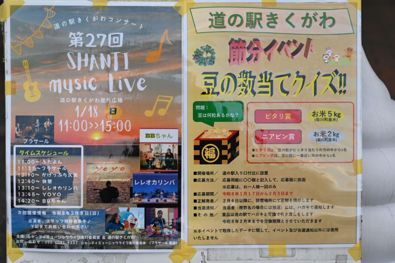 2026年1月17日(土)~2月3日(火)まで節分イベント「豆の数当てクイズ」イベントが開催される道の駅きくがわはこちら↓