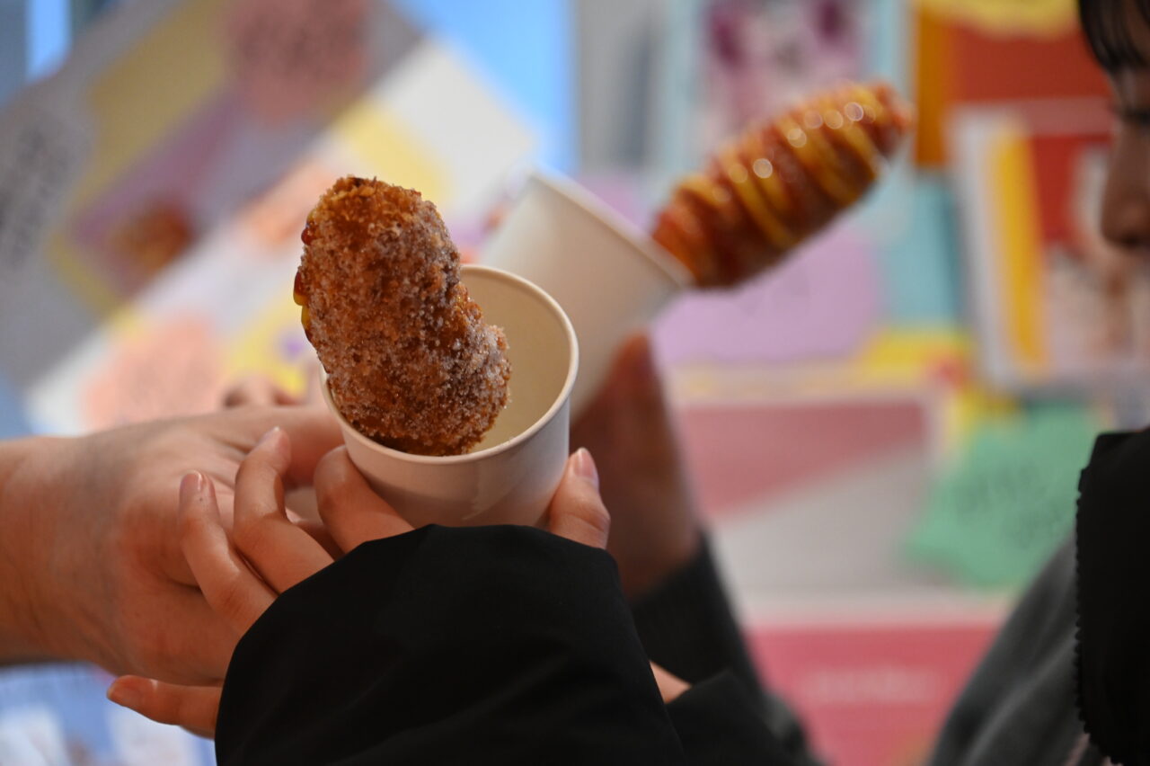 人気の商品は、びよーんとチーズが伸びるハットク。サクサクの衣の中から、チーズがこれでもかというほど伸びる韓国屋台の王道スナック・ハットクは、子どもから大人まで不動の人気だそうです。