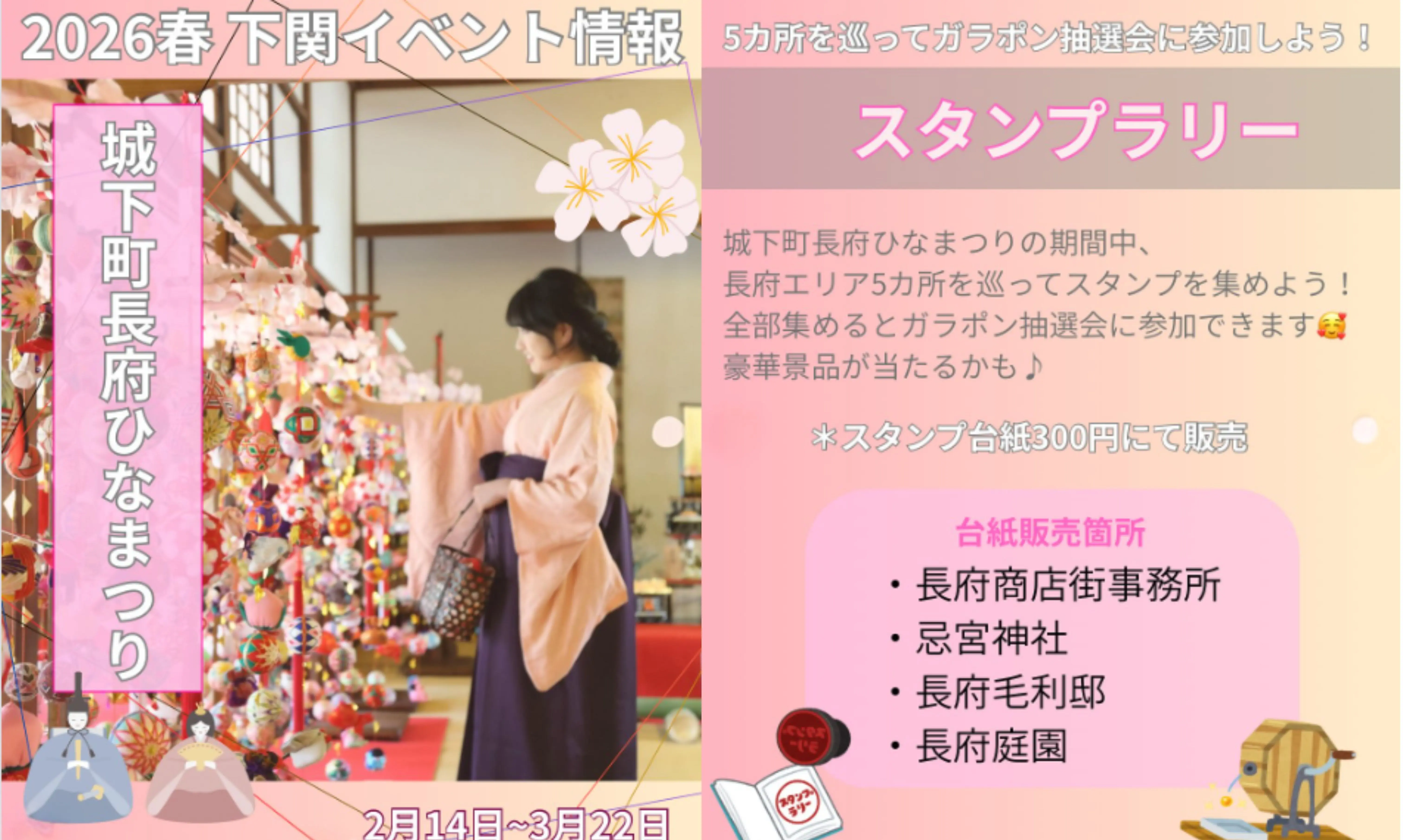 歴史の町・城下町長府が、柔らかな春の色に染まる季節が今年もやってきました。2026年2月14日(土)から幕を開ける「城下町長府ひなまつり」。
