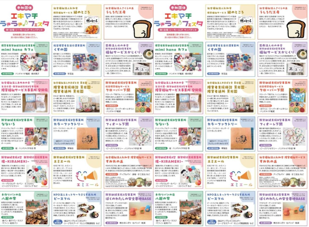 シーモールのサンパティオと、ピアモールの2カ所に並ぶのは、障害者福祉に関わる就労支援事業者17団体が、育んできた情熱の結晶。
