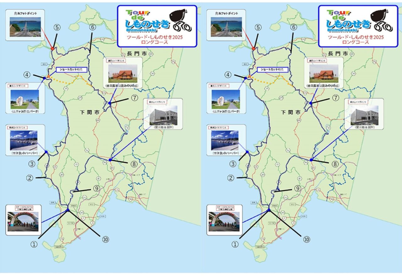 ロングコースは約125km、ミドルコースは約77kmで、どちらも下関市内をぐるりと回る設計になっています。