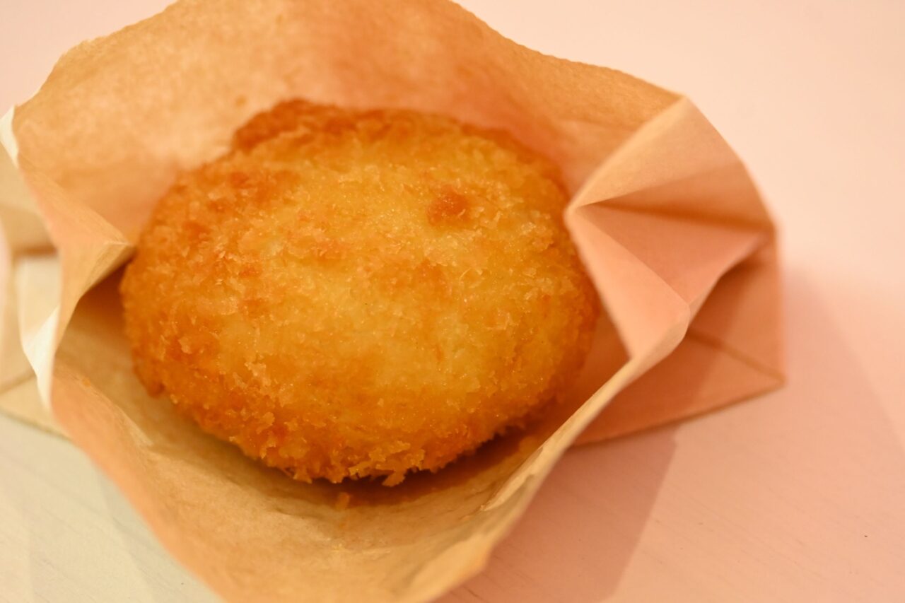 揚げたての熱を指先に感じながら、きめ細かな衣にかじりつくと、サクッと軽やかな音がしたあと、中から溢れてくるのは熱々のフィリング。たまごのコクと、じゃがいものやさしい甘みが、口いっぱいに広がります。