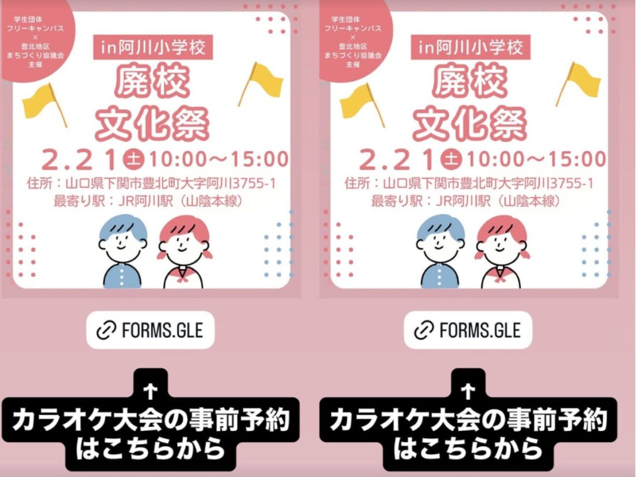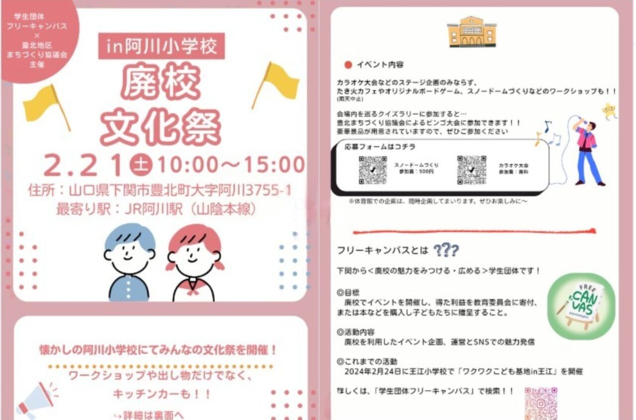 (イベントの詳細については、学生団体フリーキャンパス様、もしくは、豊北地区まちづくり協議会様にお問い合わせください)