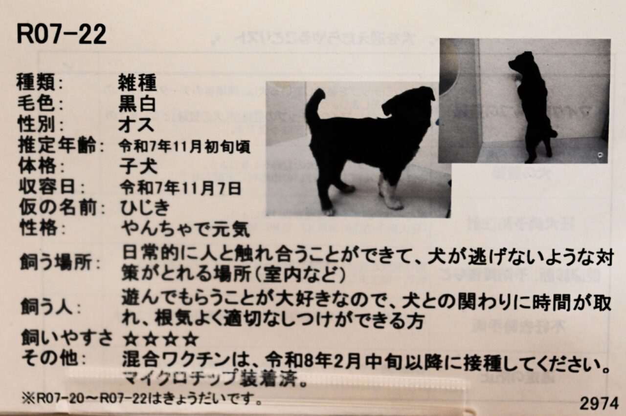 2026年1月動物愛護センターで撮影