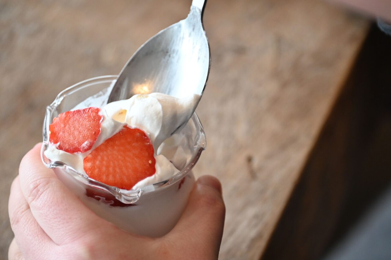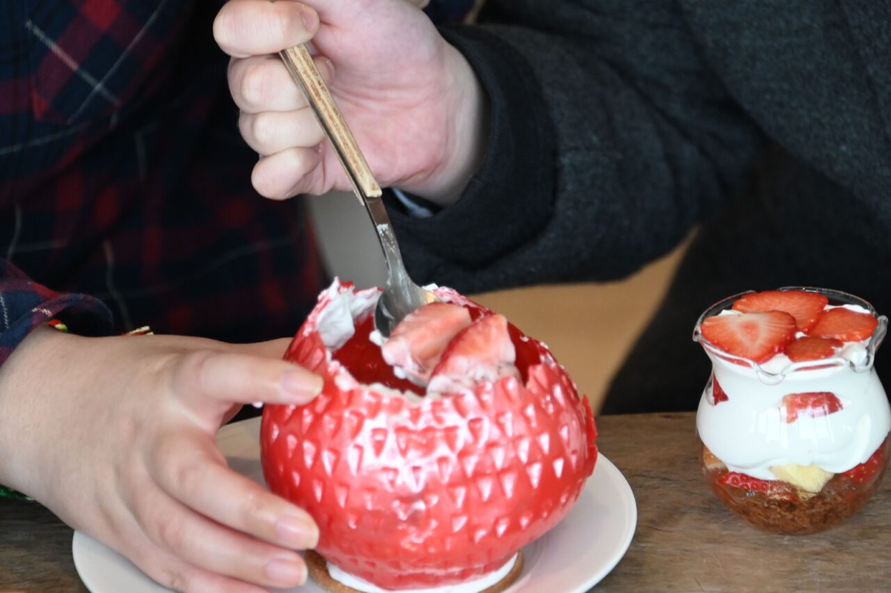 食べても食べても、次から次へと瑞々しいイチゴが顔を出す圧倒的なボリューム。一人では食べきれないほどの贅沢な量です。