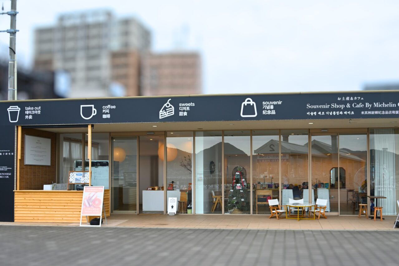 下関・あるかぽーと。関門海峡の穏やかな潮風と、キラキラと水面に跳ねる光に包まれた場所にある、カフェROYと栗林菓子研究室。