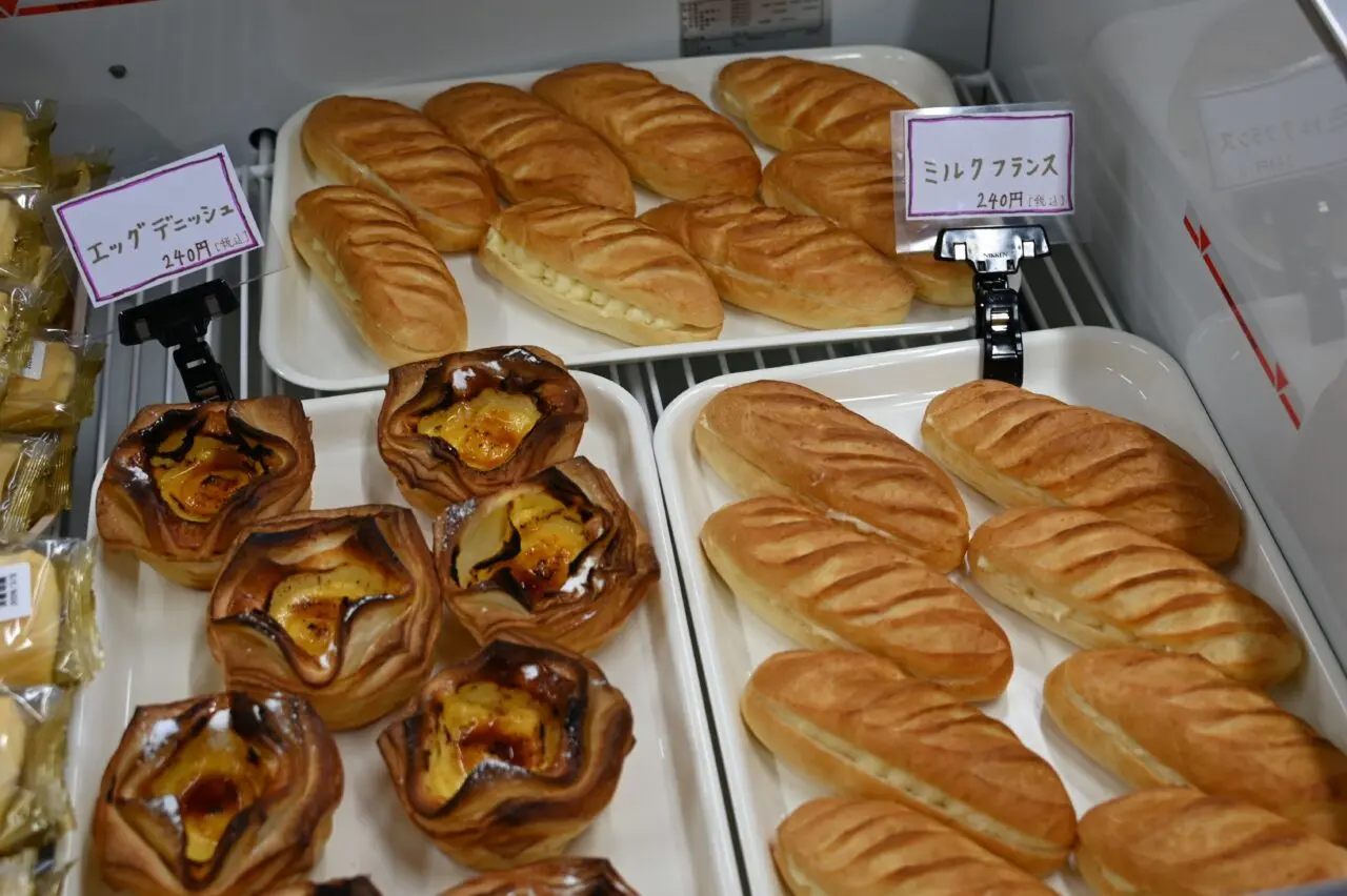 店内のパンは1つ¥200~。定休日は月曜日、支払いは現金とPayPayに対応しています。