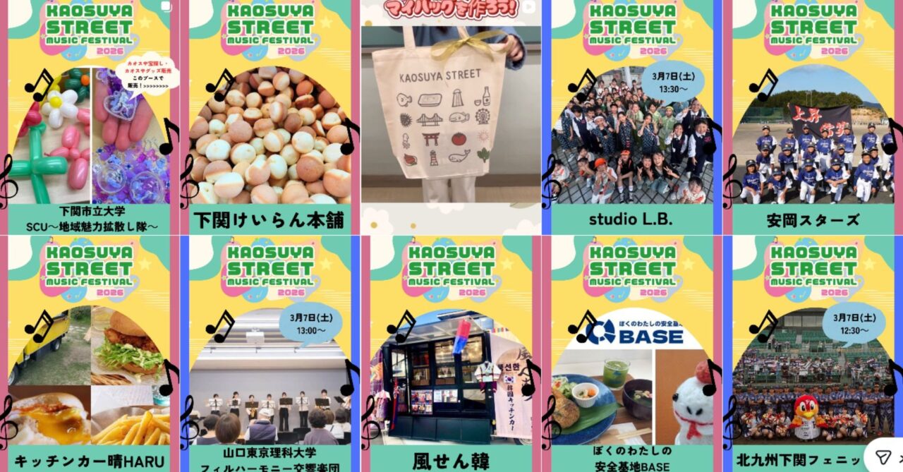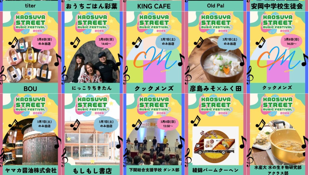 見どころの一つは、食と出会いが主役のマルシェが全開。 地元で愛されるクックメンズの「けんちょうパン」や、老舗の味が詰まった彦島みそ×ふく田の「おにぎり・豚汁セット」、そしてヤマカ醤油、山の田らーめんさんや、おにぎりなど、2日間で51組の出店があるとのこと。