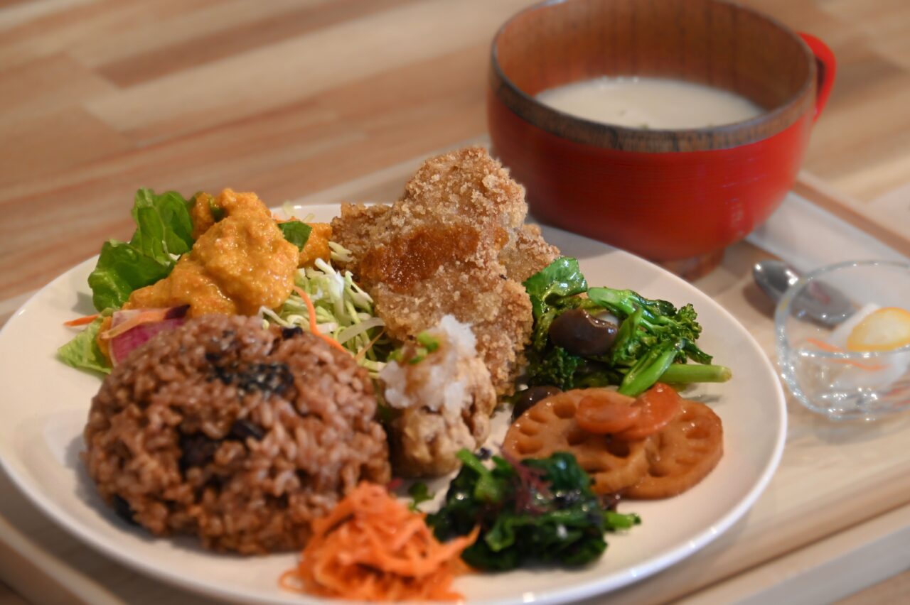 プレートを彩る副菜たちも、地元の野菜の甘みやお出汁の香りを主役にした、やさしい味付けのものばかり。かむかむさんのご飯は、お腹がいっぱいになったのに、重たさが残らないからとっても心地良い。