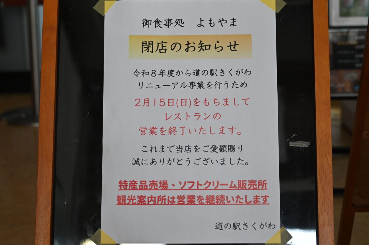 しかし、特産品売場や観光案内所、そして道の駅きくがわの楽しみでもあるソフトクリームの販売は、これからも休まず続けられるようです。