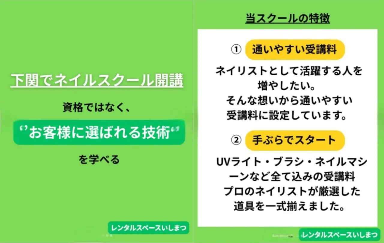 下関市山の田本町でネイルサロン「AIDE ~couleur~(エイド クルール)」を営む北野さんが、2025年4月12日から、新しい学びの場を開校します。