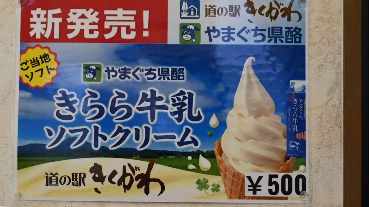 それからもうひとつ、道の駅きくがわを訪れるなら見逃せないこと。ソフトクリームが、山口きららソフトに変わったこと。