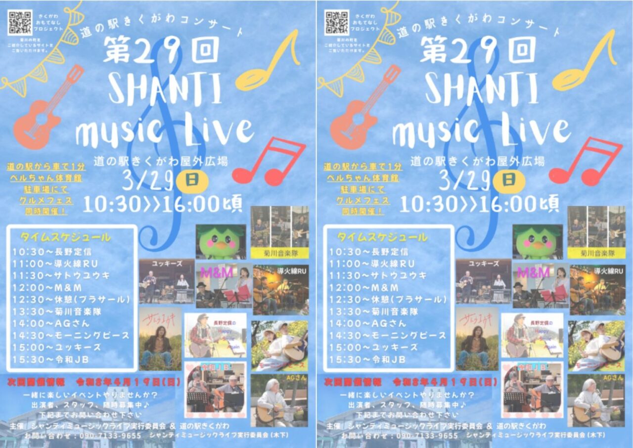 3月29日(日)に開催されるのは、第29回 シャンティ Music Live。