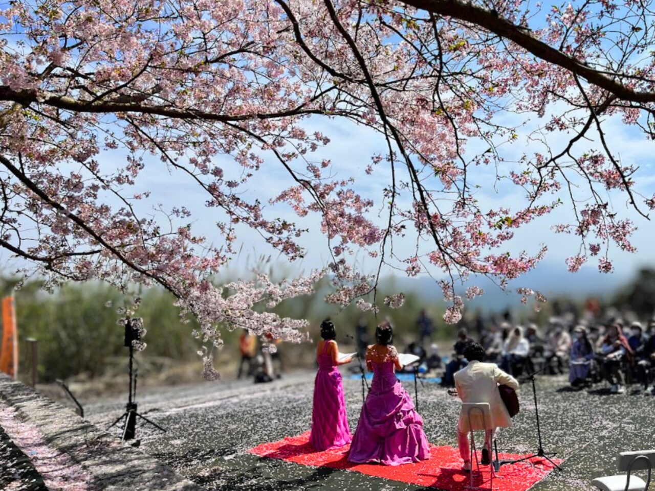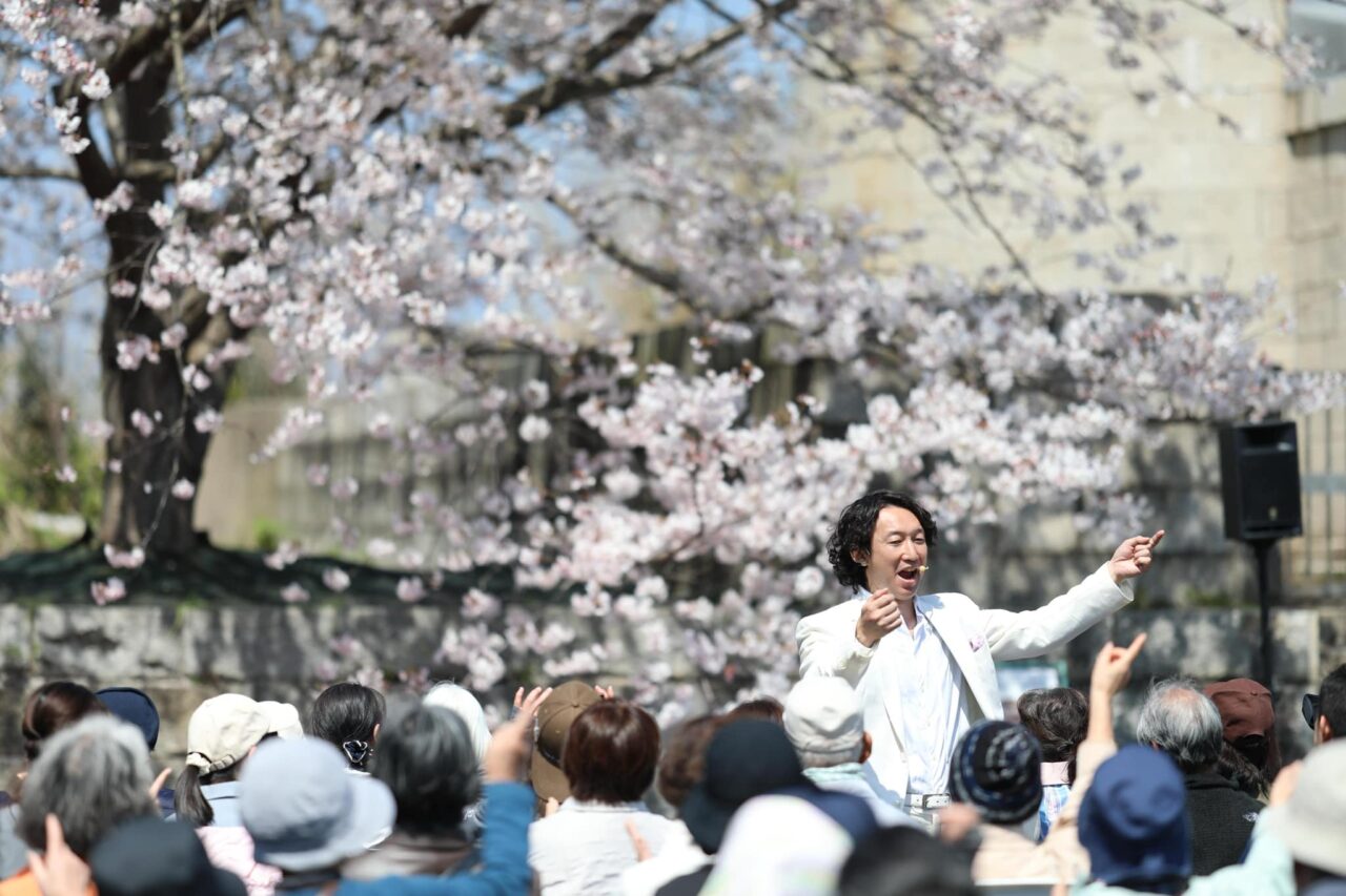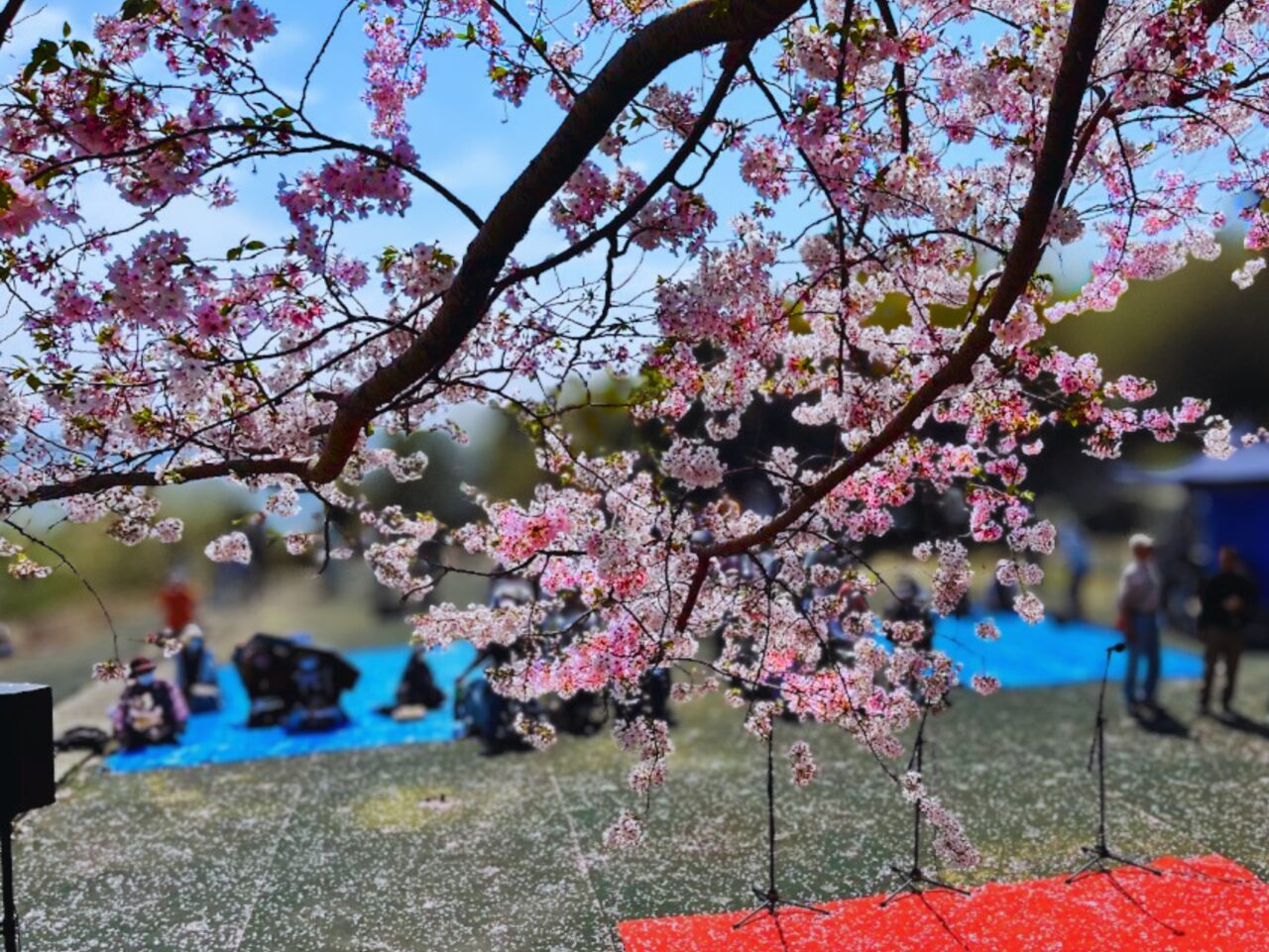 照明も音響設備も、仰々しい演出もなく、舞い散る桜だけがステージを飾る野外コンサートです。