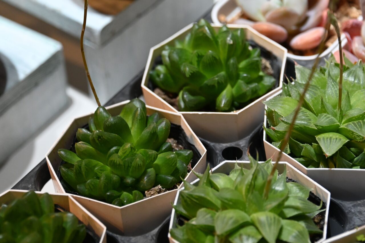 店内では多肉植物たちも、春を謳歌するように瑞々しく輝いています。