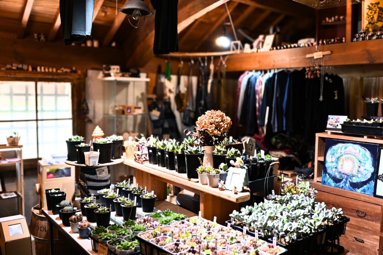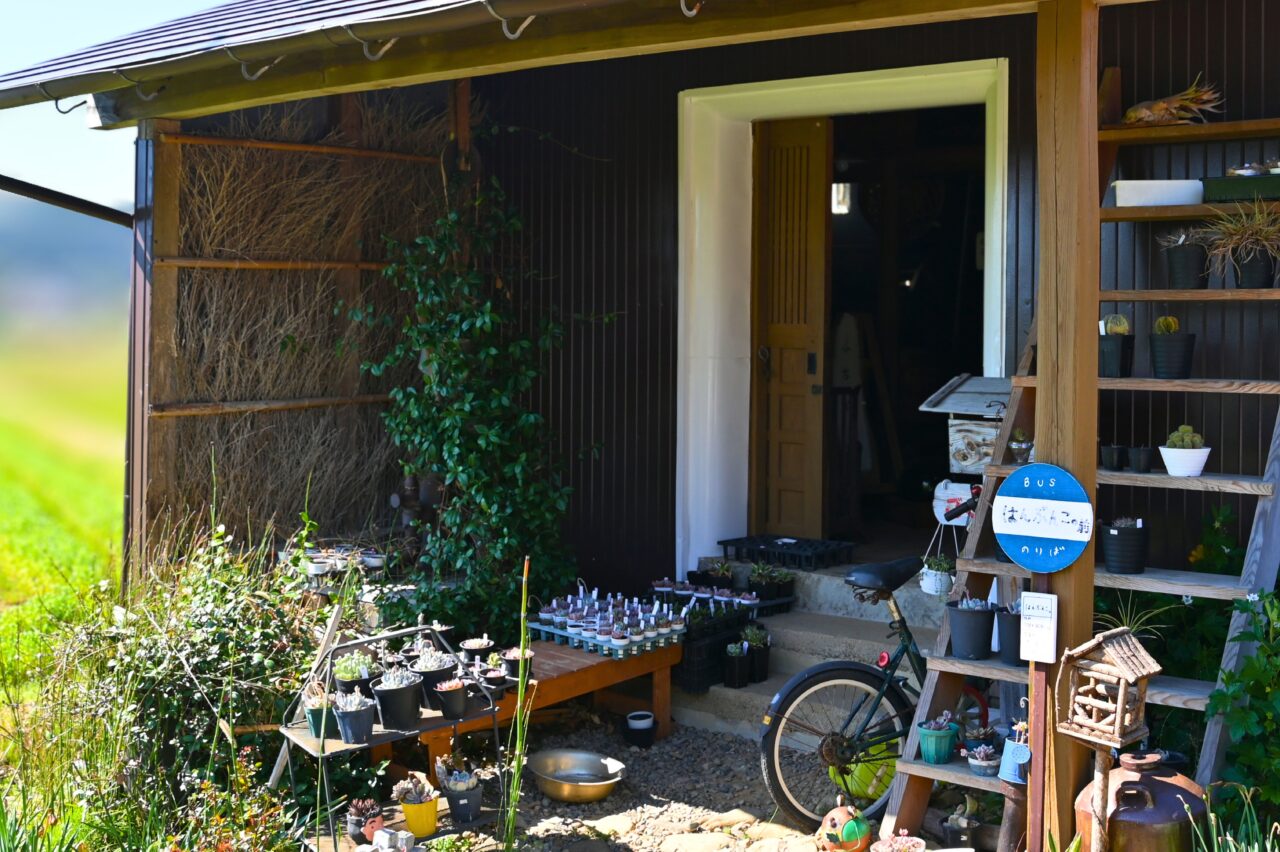 道の駅 蛍街道西ノ市の近くの多肉植物と雑貨のお店、はんぶんこさんは、蔵の階段を上がった先に広がる、春の異世界への入り口です。