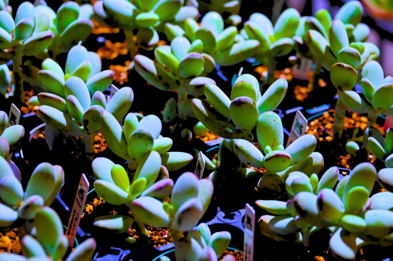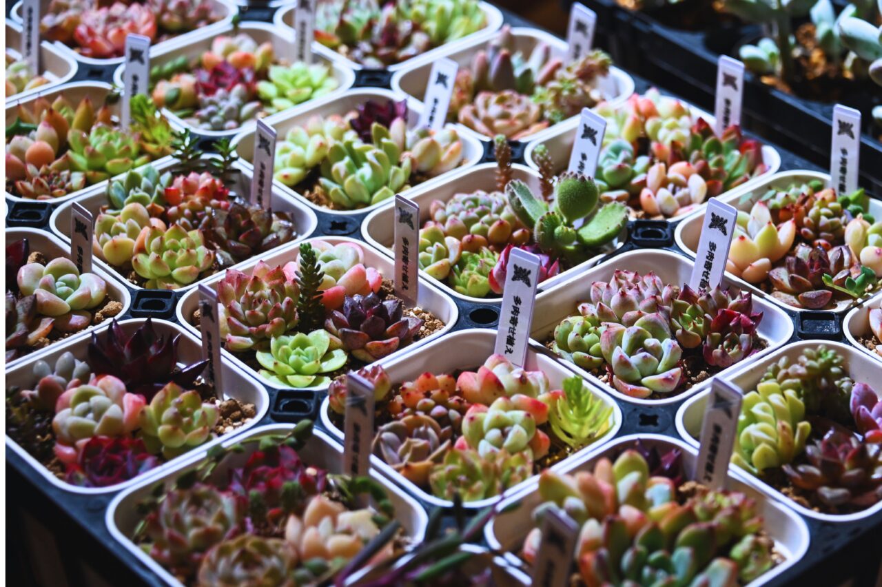 ぴかぴかでぷくぷくとした葉多肉植物や、