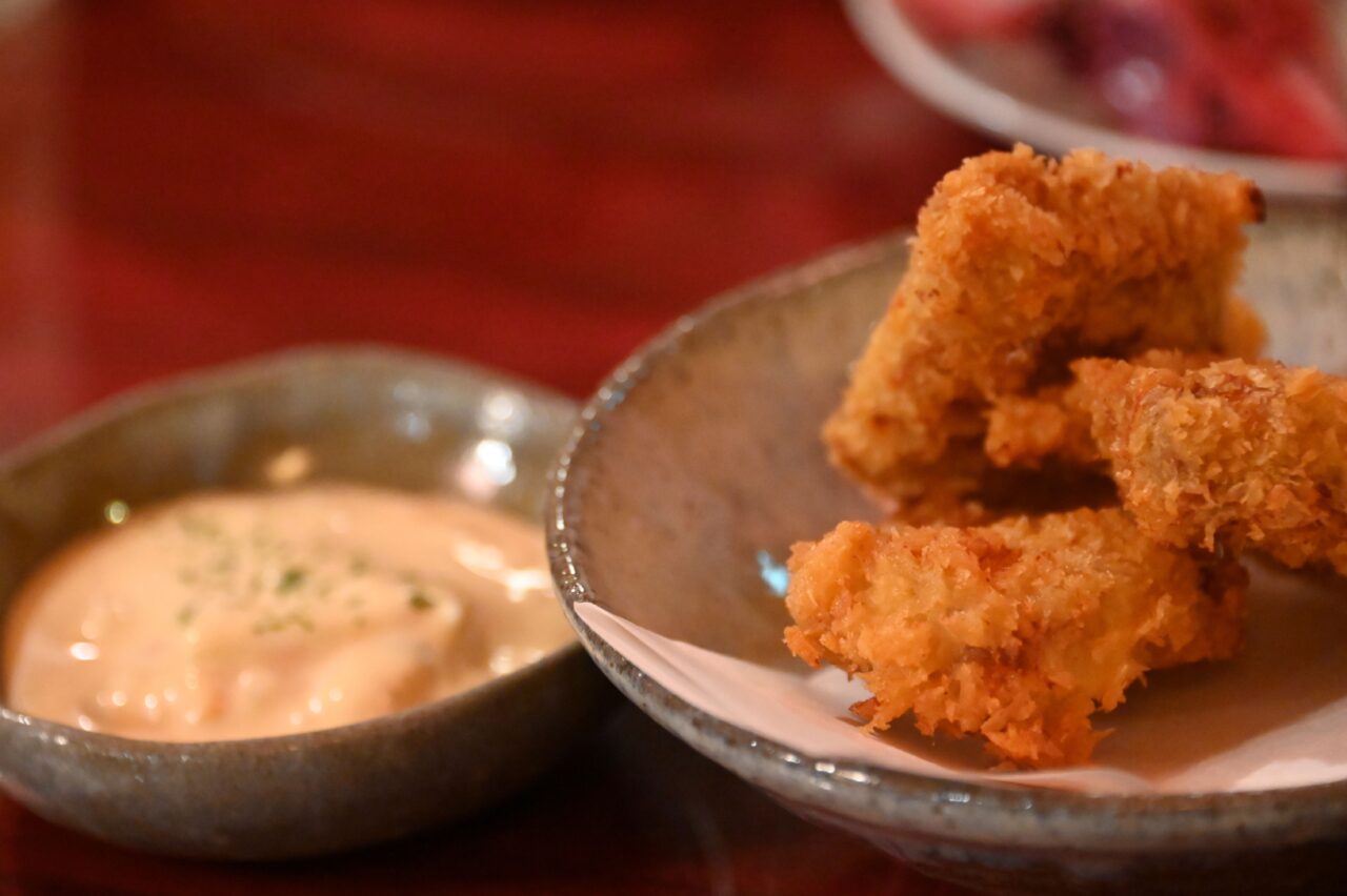 自家製のタルタルソースで食べるマグロのカツも、外せません。