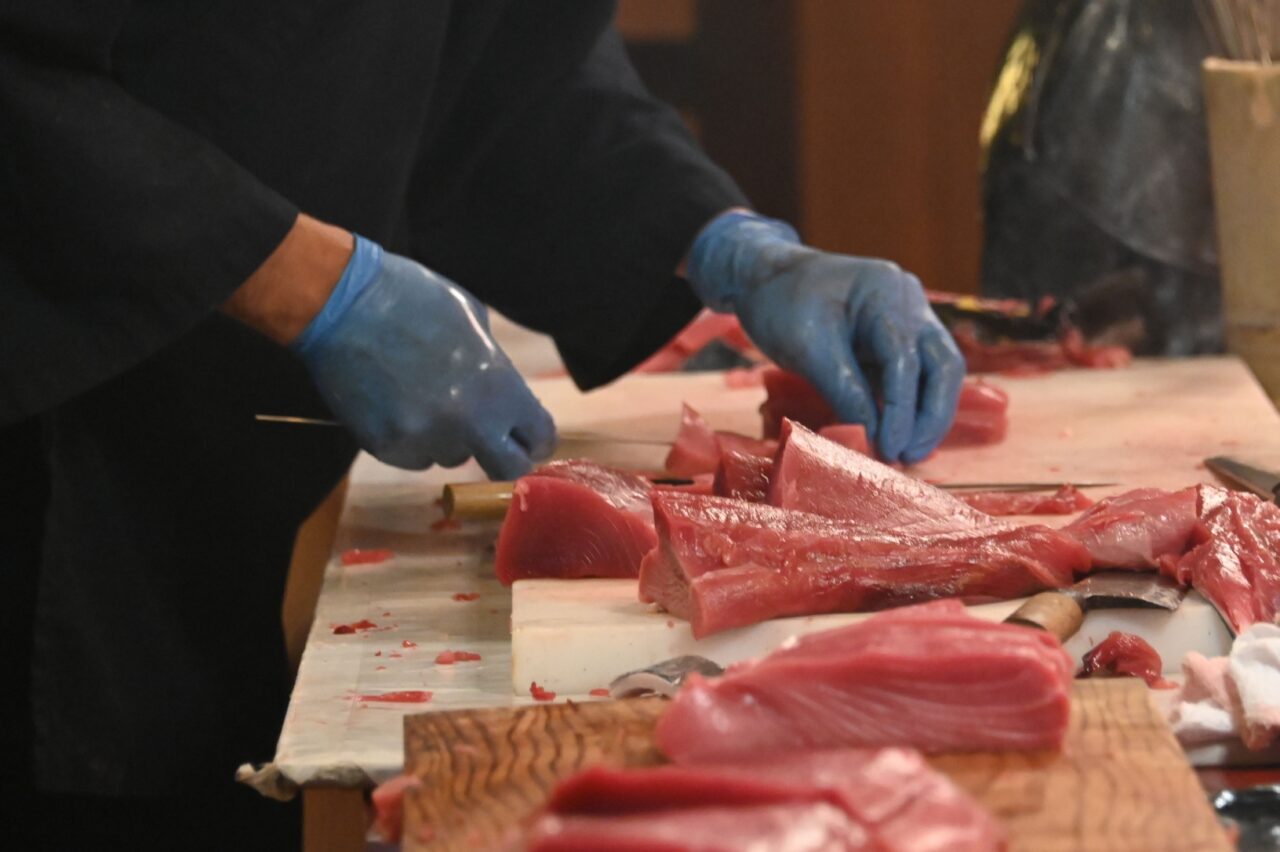 その場で切り分けられていく身の瑞々しさは、見ているだけで鮮度の良さが伝わってきます。