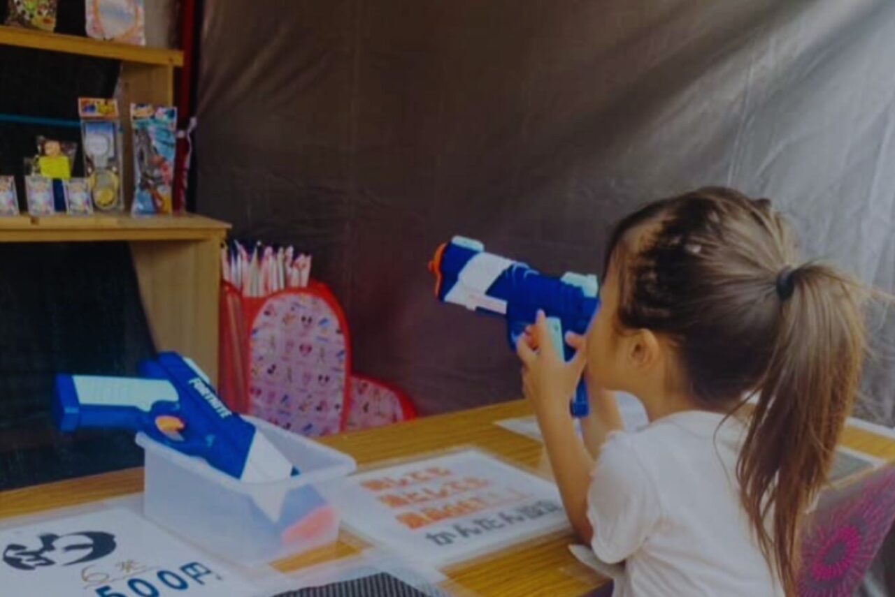 威力抜群の銃で的を狙う本格的な射的体験ができ、倒しても落としても景品がもらえる仕組みだといいます。ハズレなしのくじ引きも用意されているようです。