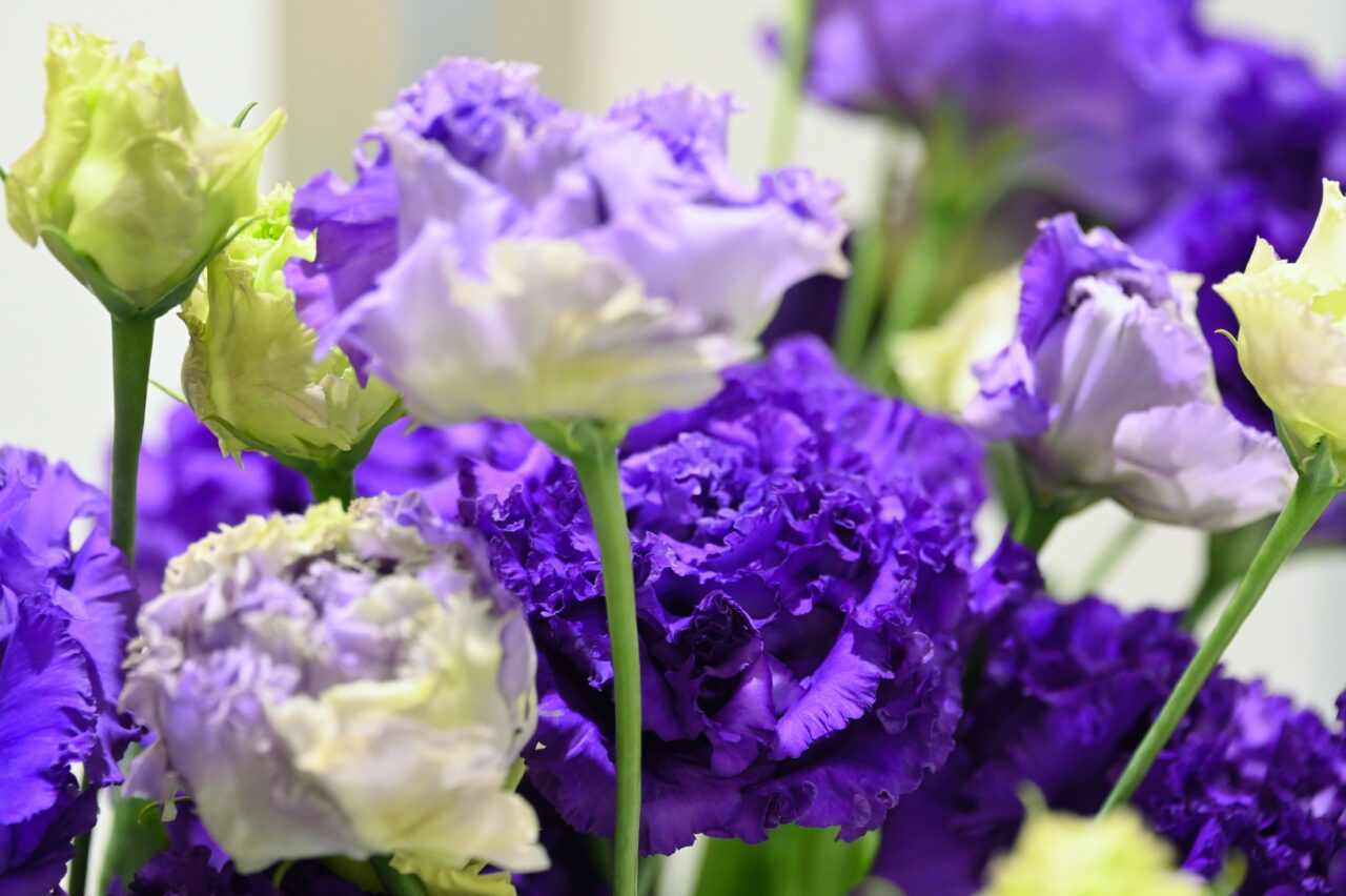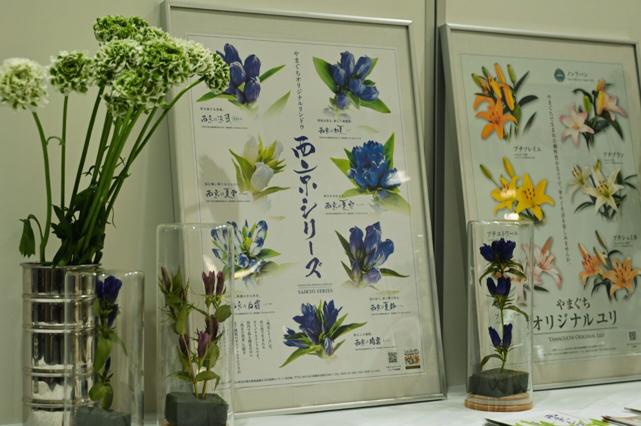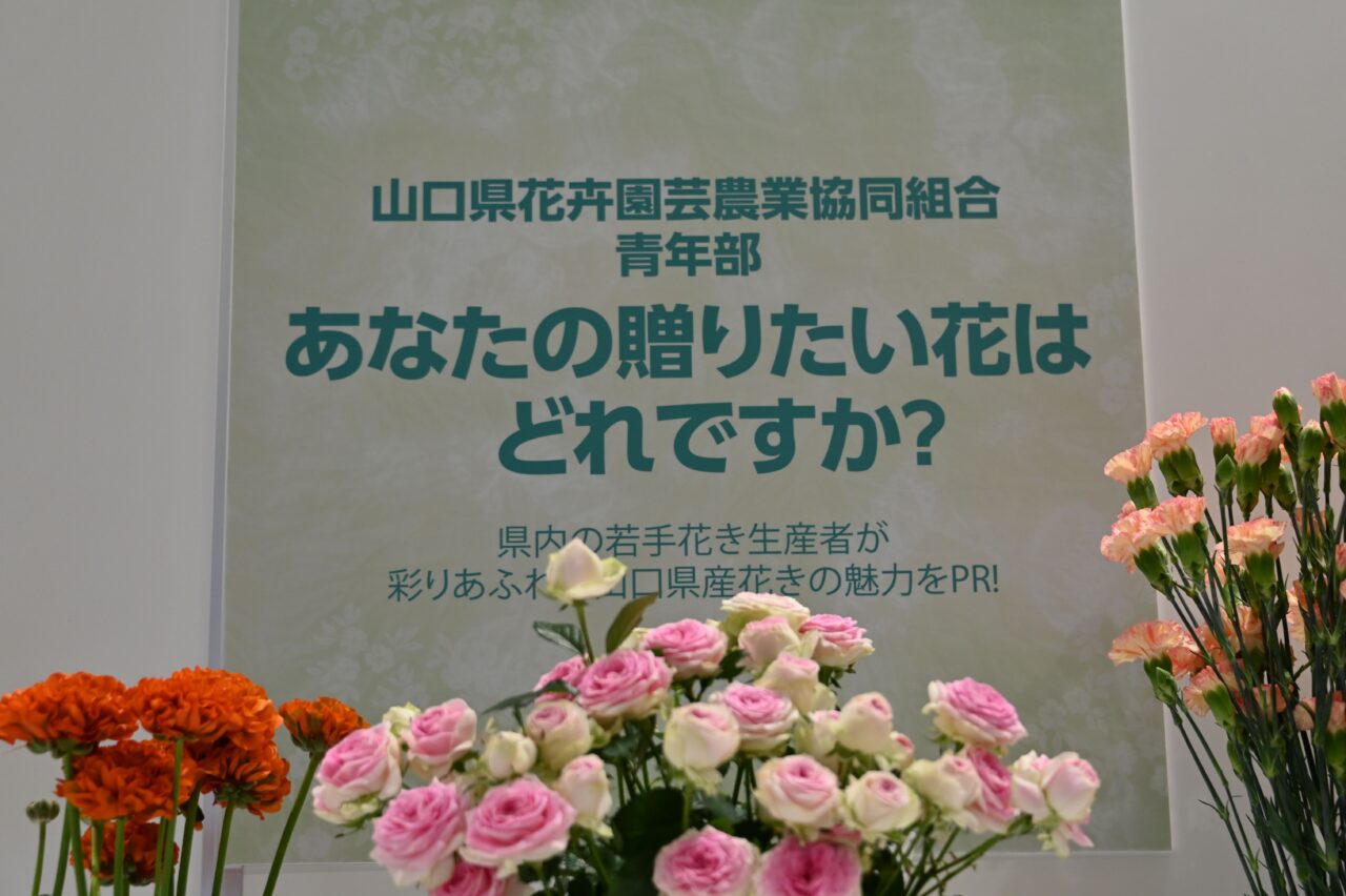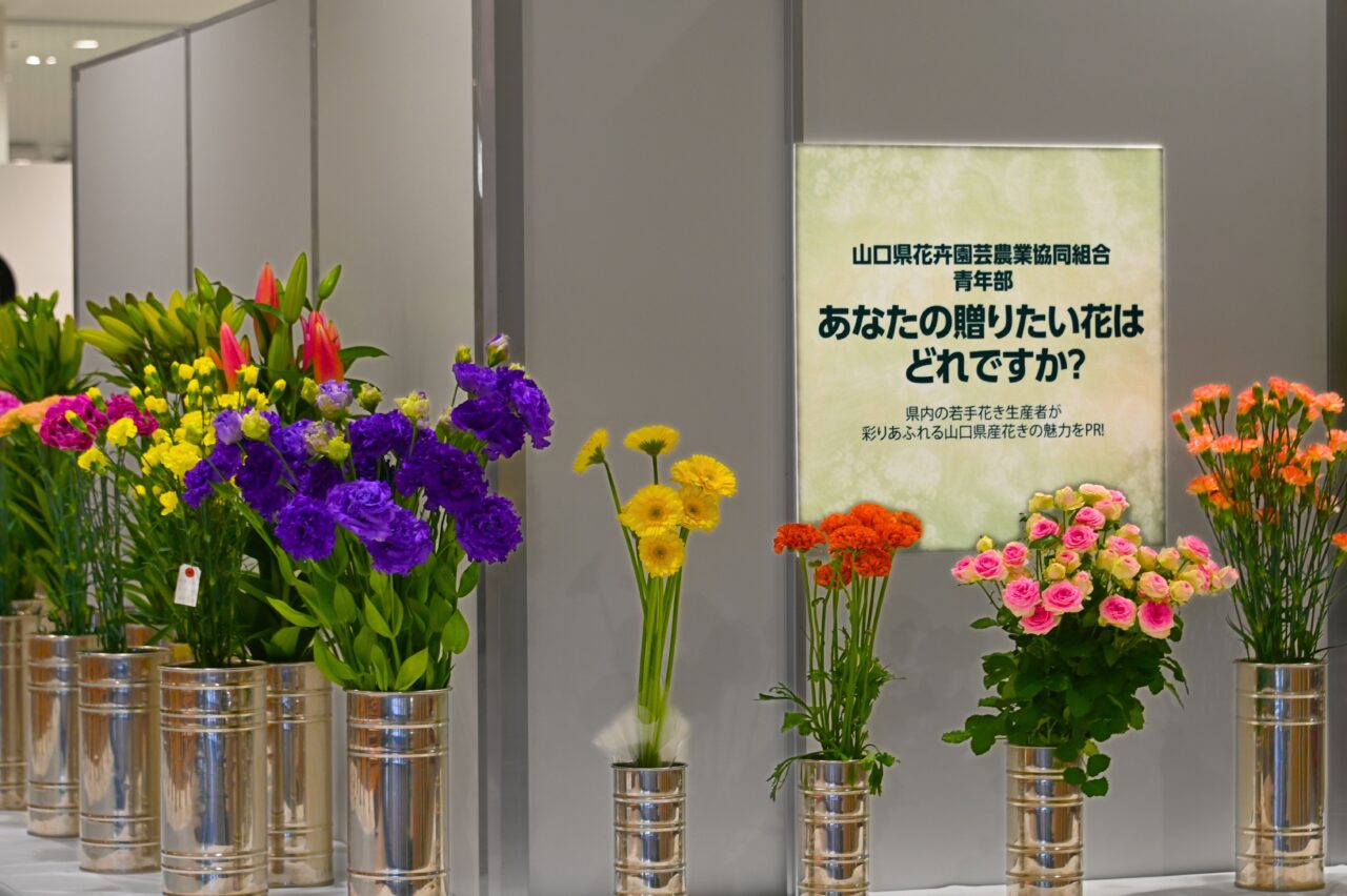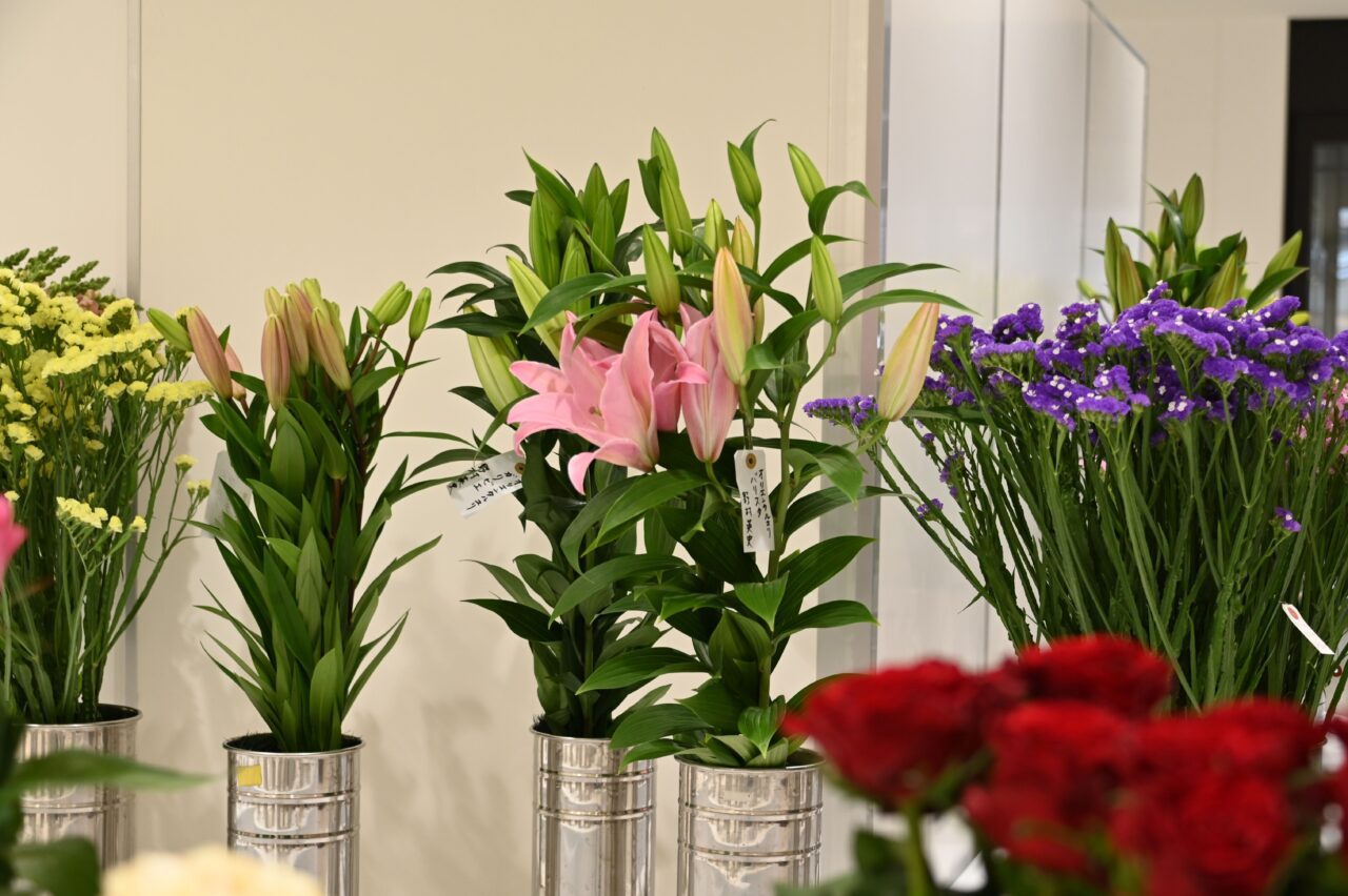 主催の、山口県花卉園芸農業協同組合青年部のメンバーが、最高の状態でそろえている花たち。