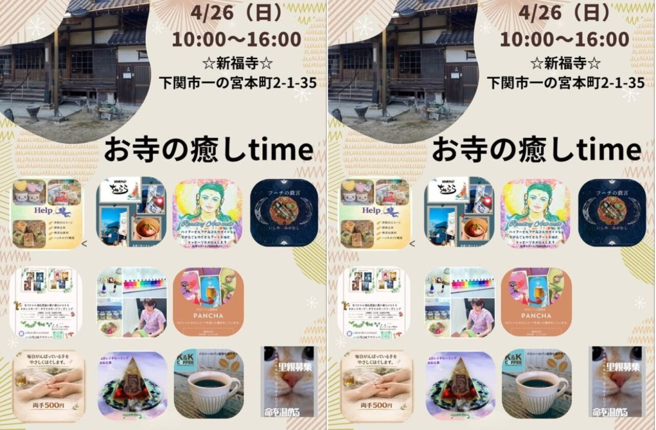 そんなふうに、正体のわからない、小さな心の詰まりを感じたら、2026年4月26日(日)に、10:00~16:00に開催されるイベント、お寺の癒しtimeに足を運んではいかがでしょうか。