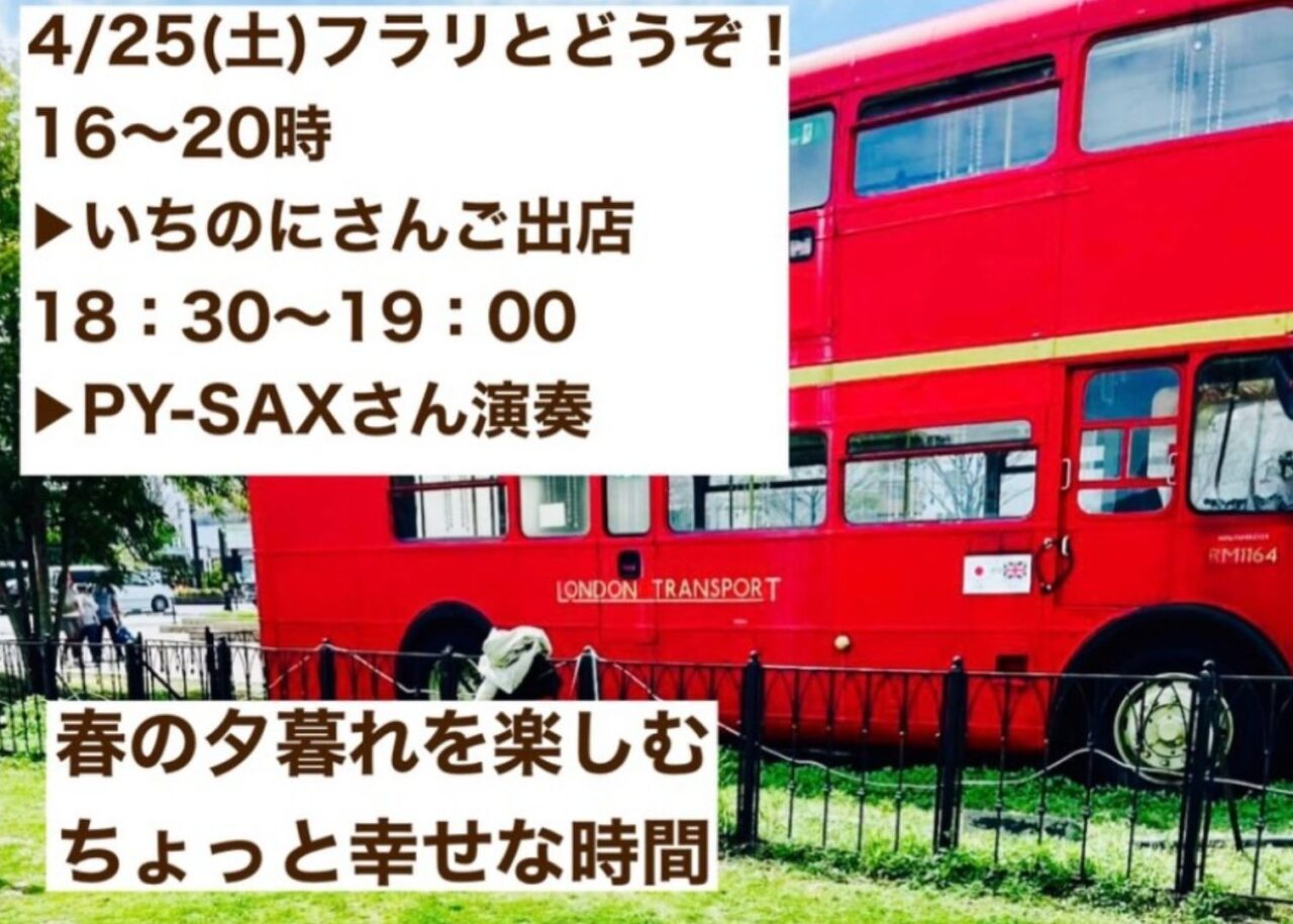 そんな日に、ちょうどいい場所があります。あるかぽーとの、ロンドンバスのそば。今週末の2026年4月25日、ここで小さなイベントが開かれる予定とのこと。
