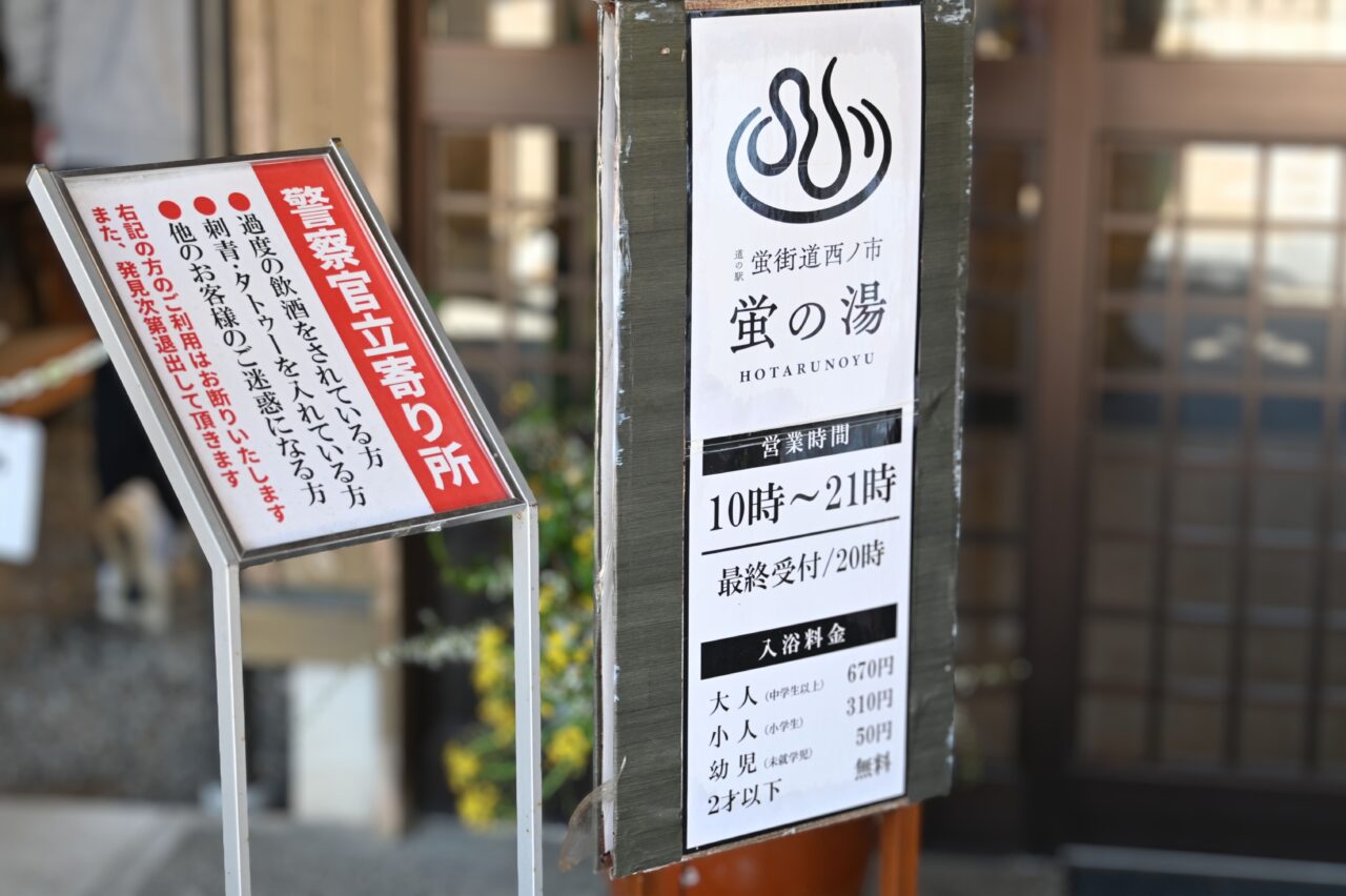 温泉施設「蛍の湯」の営業時間は、期間中も通常通り10:00〜21:00(最終受付20:00)です。